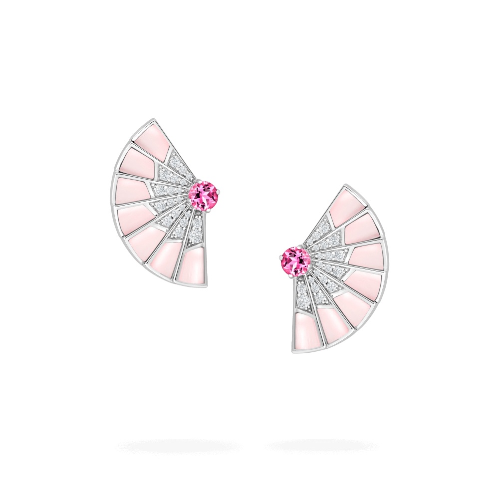Fanfare Symphony Pink Tourmaline and Pink Opal Earrings In 18ct White Gold with Diamonds