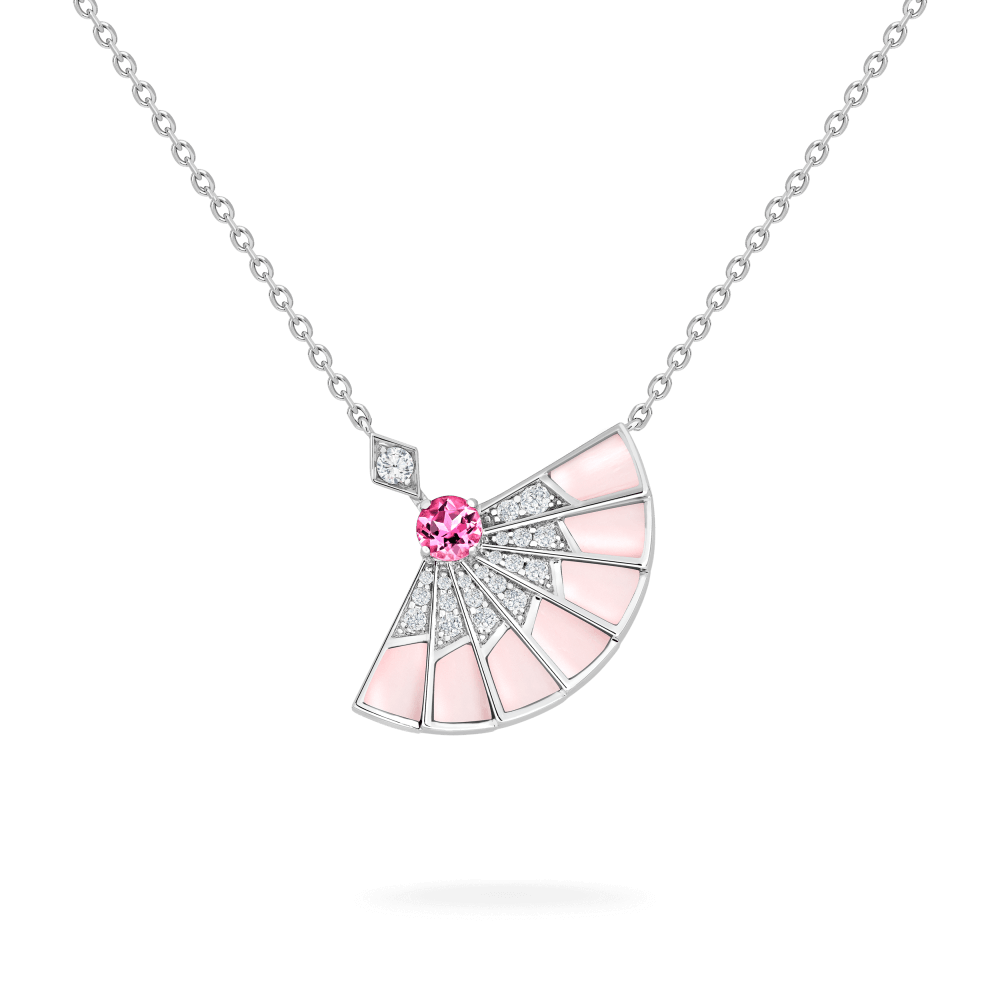 Fanfare Symphony Pink Tourmaline and Pink Opal Pendant In 18ct White Gold with Diamonds
