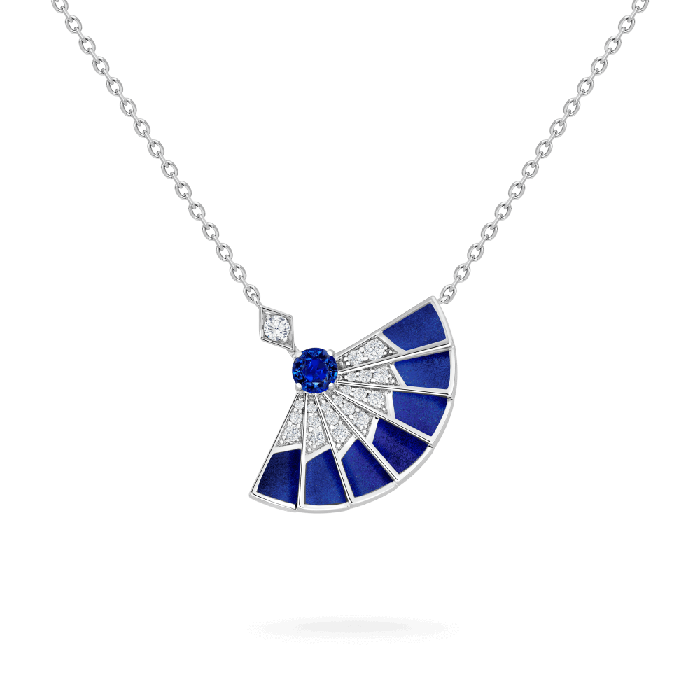 Fanfare Symphony Sapphire and Lapis Lazuli Pendant In 18ct White Gold with Diamonds