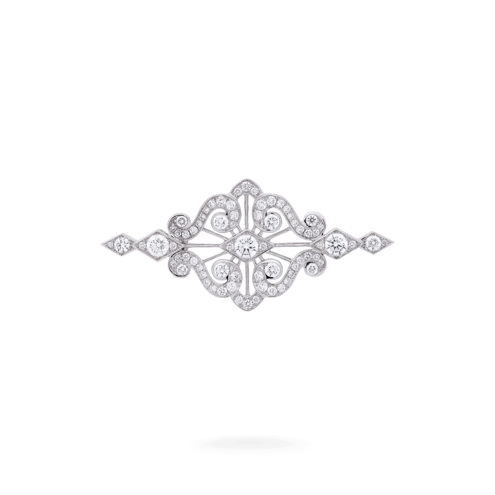 A bold twist on a signature design, asymmetric compositions of stones reinvent the Garrard Windsor motif in contemporary Albemarle jewels that are beautifully balanced yet highly individual.