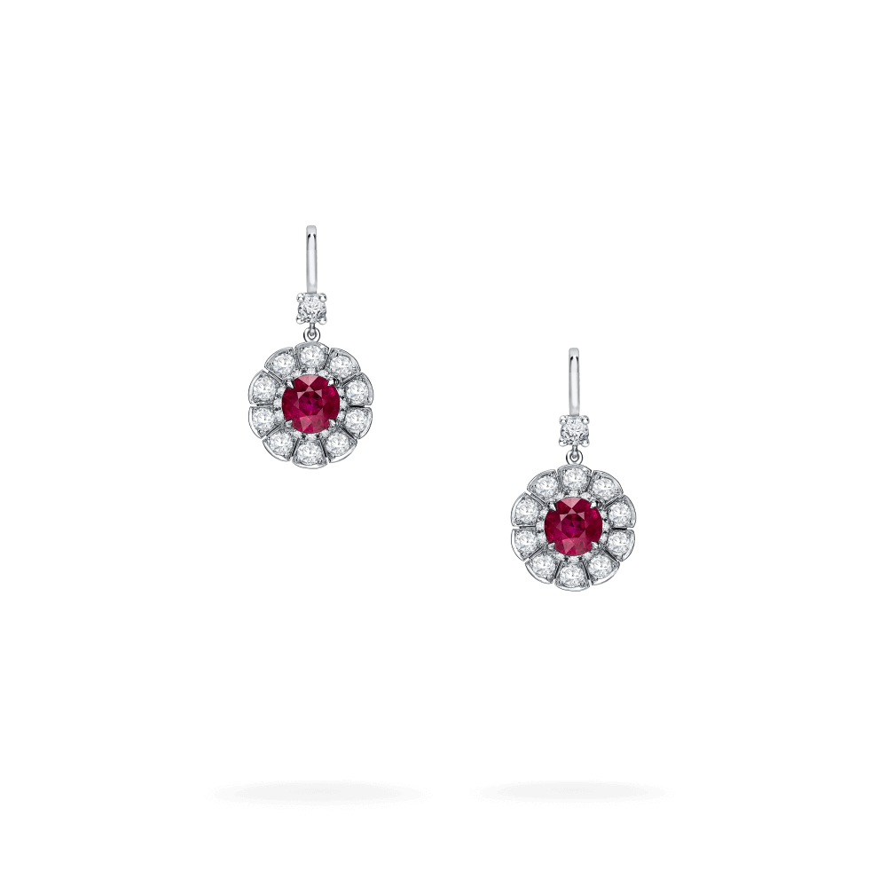 Jewelled Vault Marguerite Ruby and Diamond High Jewellery Earrings In Platinum