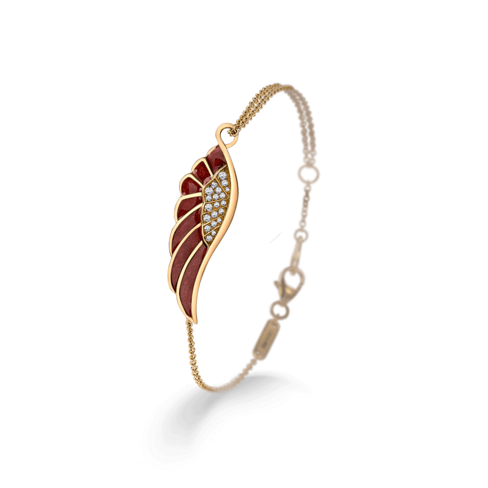 Wings Reflection Autumn Enamel Bracelet In 18ct Yellow Gold with Diamonds