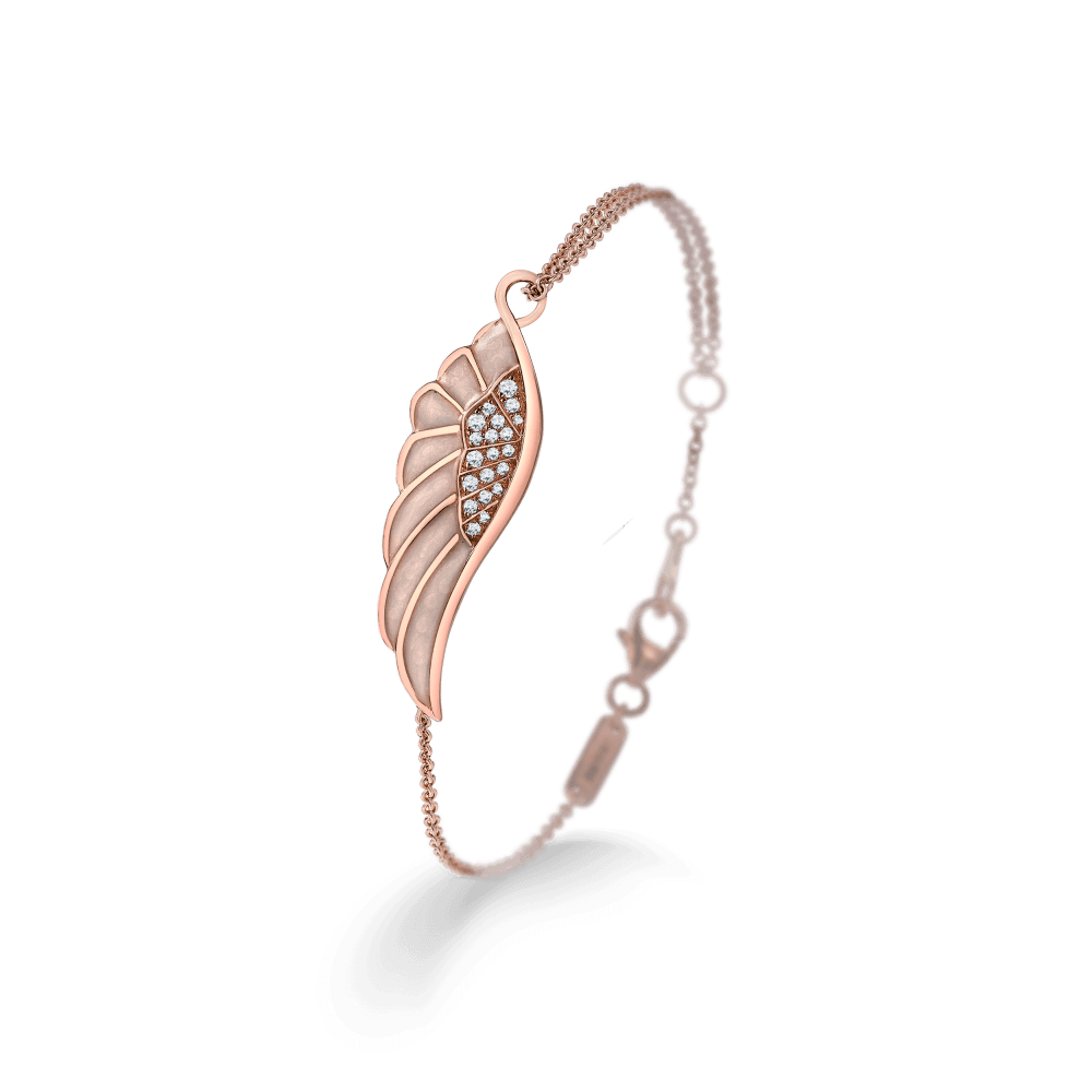 Wings Reflection Spring Enamel Bracelet In 18ct Rose Gold with Diamonds