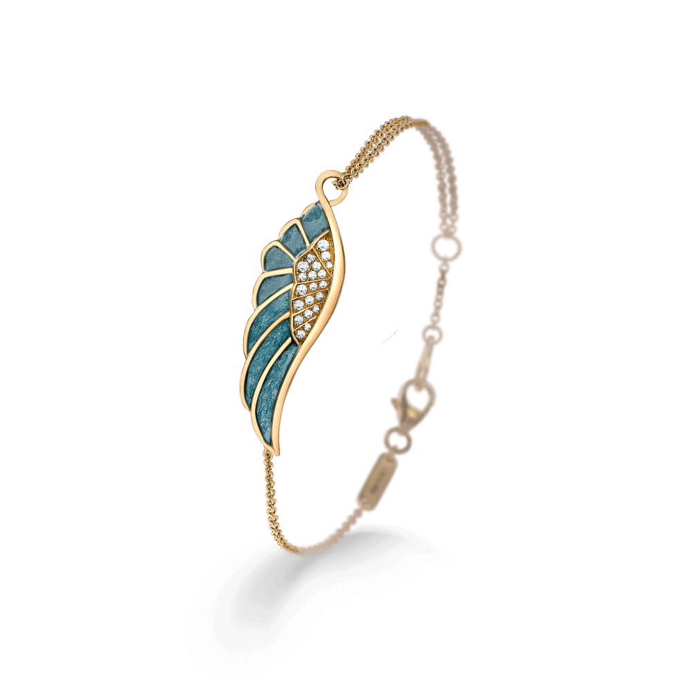 Wings Reflection Summer Enamel Bracelet In 18ct Yellow Gold with Diamonds